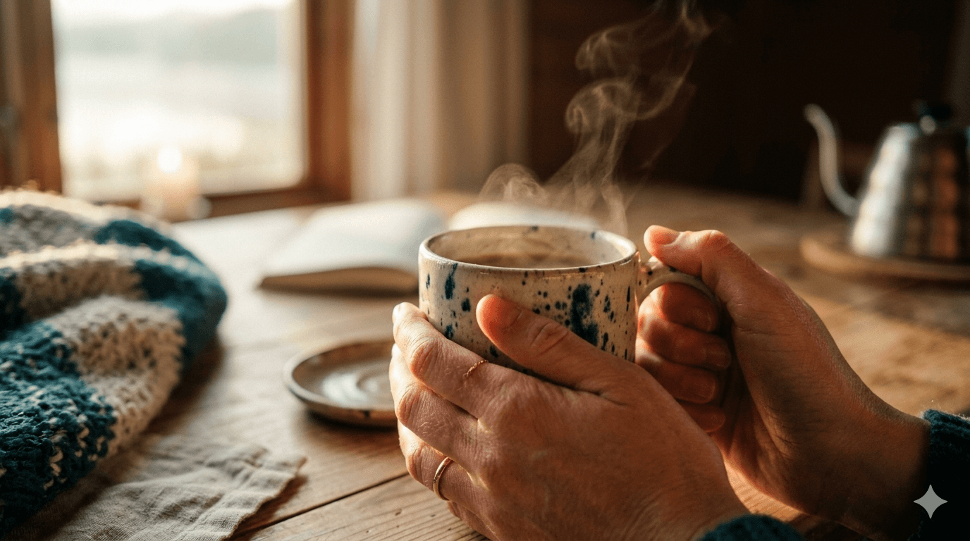 Jeden Morgen um 7 Uhr live: Ca. 60 Minuten, die dich zurück in deine Mitte bringen. Mit 10-minütiger Meditation, Impulsen und der Frage: „Was brauche ich heute wirklich?"